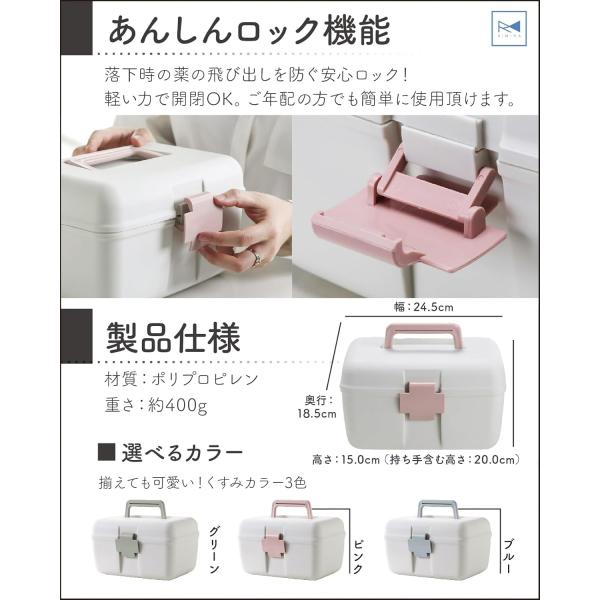 薬箱 救急箱 救急ケース 可愛い 持ち運び くすみカラー 収納ボックス コンパクト サイズ ロック機能付き 2段収納 重なる RIMINA リミナ
