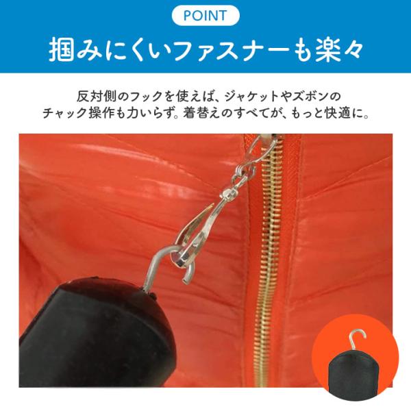 ファスナーの操作を補助する機能付きで、洋服の着脱が格段に楽になります。