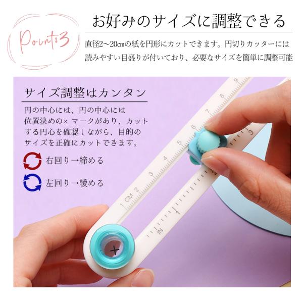 【穴が開かない】サークルカッター 円カッター 直径2cm〜20cm調整可能|クラフト・工作・DIYに最適|安全&滑り止め設計 PPプラスチック製 回転カッター|