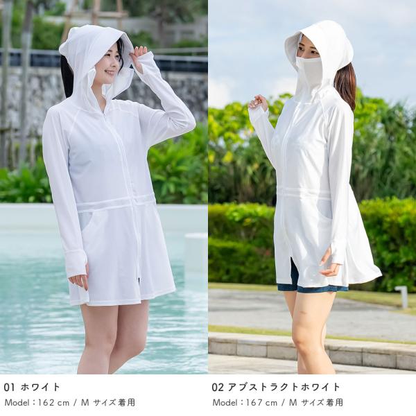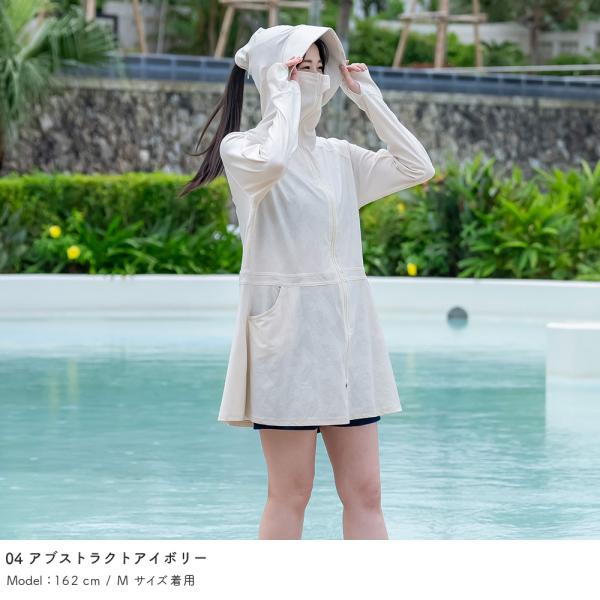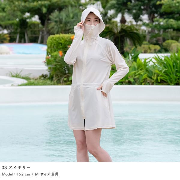 ラッシュガード レディース ハイネックパーカーロング丈 つば付き フェイスマスク 長袖 体型カバー UVパーカー 日焼け対策