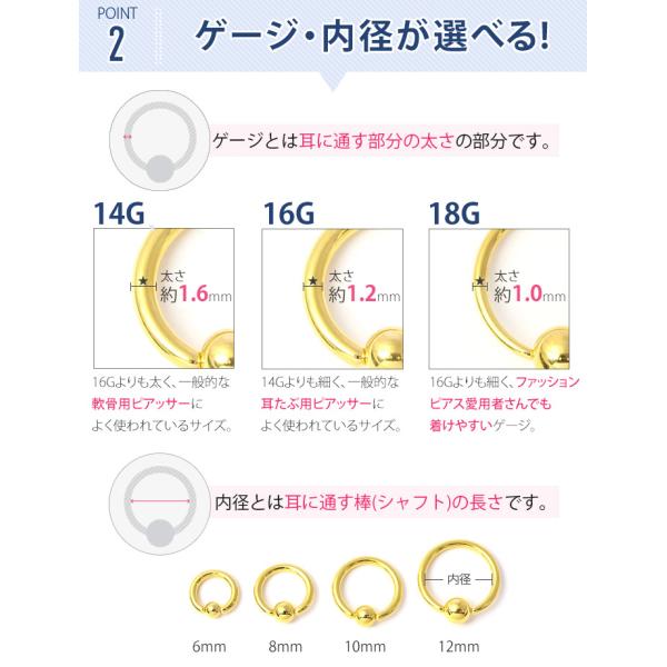 キャプティブビーズリング ボディピアス 軟骨 ピアス 14G 16G 18G 14ゲージ 16ゲージ 18ゲージ ゴールド 金 ピンクゴールド パープル 紫 ブラック 黒 サージカルステンレス メンズ おしゃれ レディース 眉ピアス 耳たぶ「CBR」「colgd」
