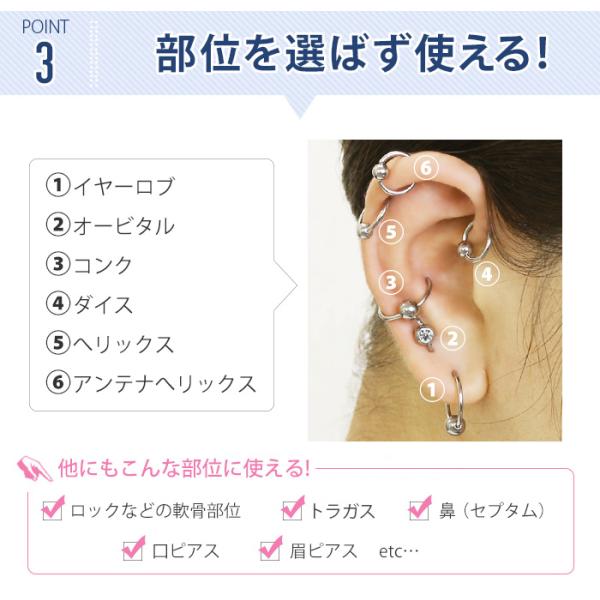ボディピアス 軟骨ピアス 14G 16G 18G ジュエル 金属アレルギー対応 ステンレス 片耳用 トラガス レディース