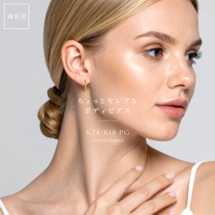 ピアス つけっぱなし 16G 18G フープ ドロップ 24金 K24 K18PG コーティング セグメントリング 金属アレルギー対応 母の日 『両耳用・2個セット』