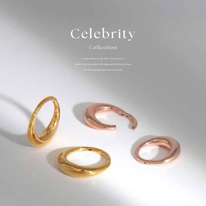 【両耳用・2個売り】 ピアス セレブリティ ラグジュアリー プレゼント ワンタッチ ピアス 24金 ピンクゴールド 24K 18KPG コーティング 上品 フープ ピアス ドロップ ワンタッチ リングピアス 軟骨1486 ch-145-j-2
