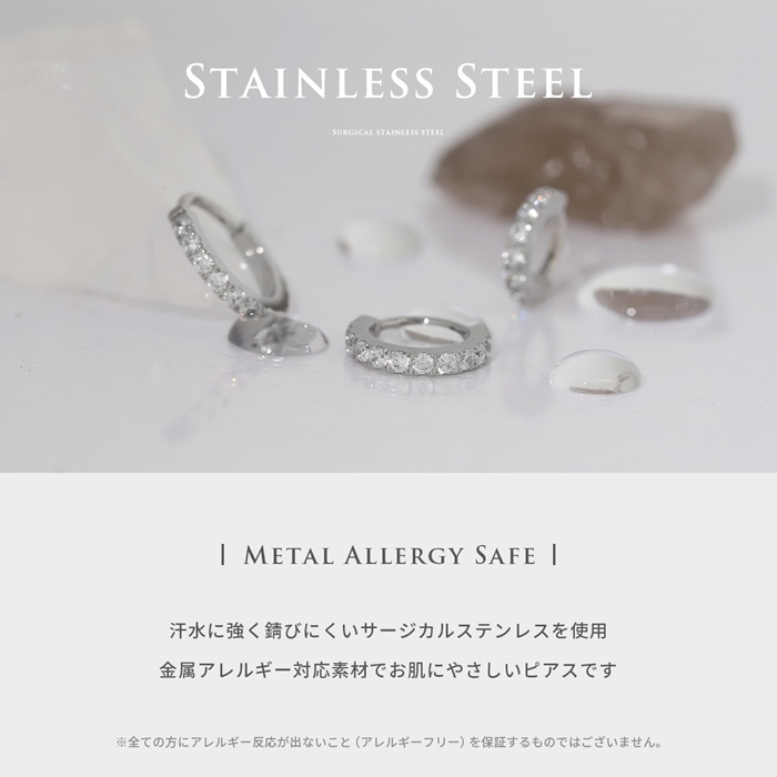 ピアス つけっぱなし 金属アレルギー対応 14G 16G 18G ジュエル サージカルステンレス フープ 母の日 『両耳用・2個売り』