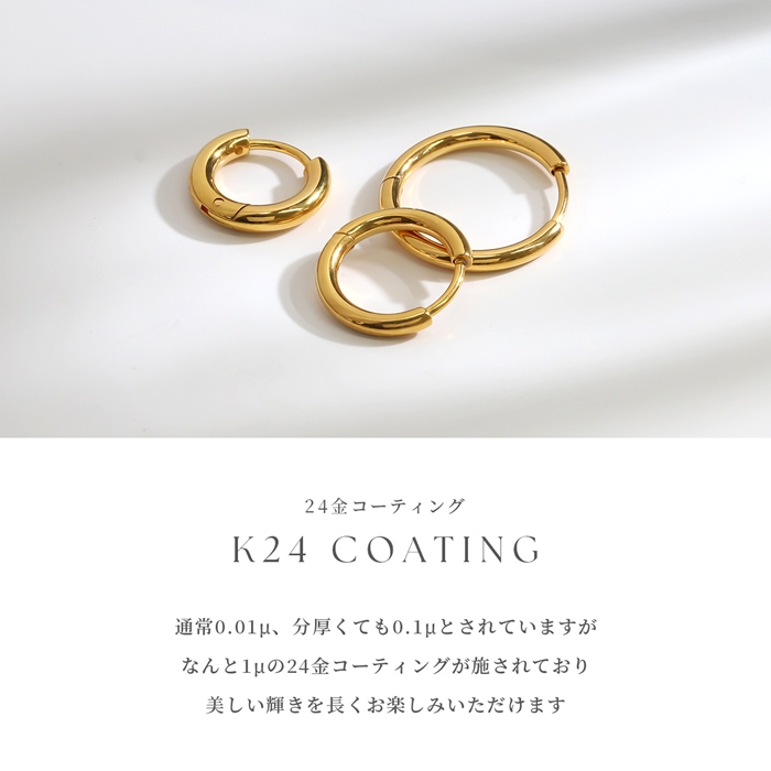 リングピアス レディース 24金 24K 18KPG コーティング フープ ワンタッチ 金属アレルギー対応 キャッチレス 母の日 『両耳用・2個セット』