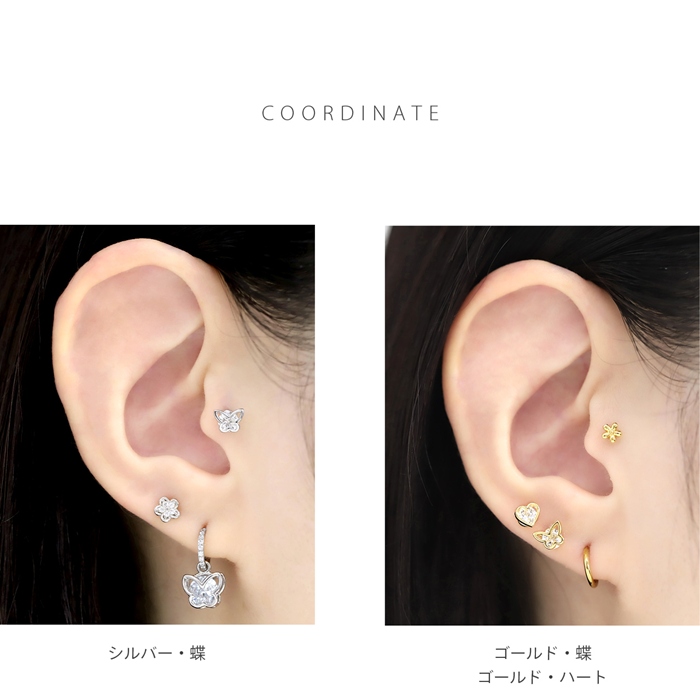 ボディピアス 軟骨 ピアス ジルコニア 16G 蝶 バタフライ ハート ジュエル ストレートバーベル 片耳用 軟骨1575 d-091