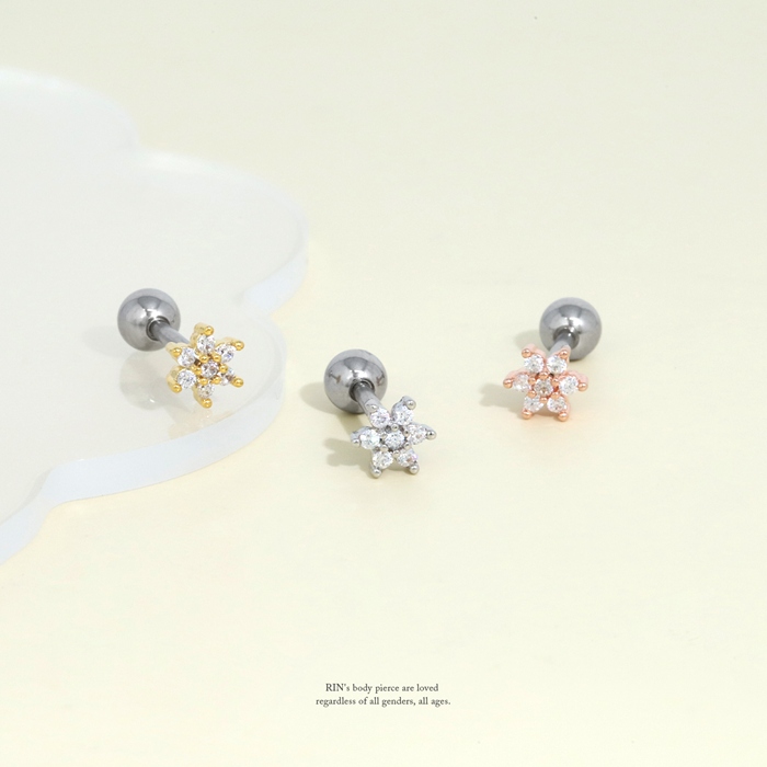ボディピアス キラキラ 雪 軟骨 ピアス 花 ジュエル 可愛い