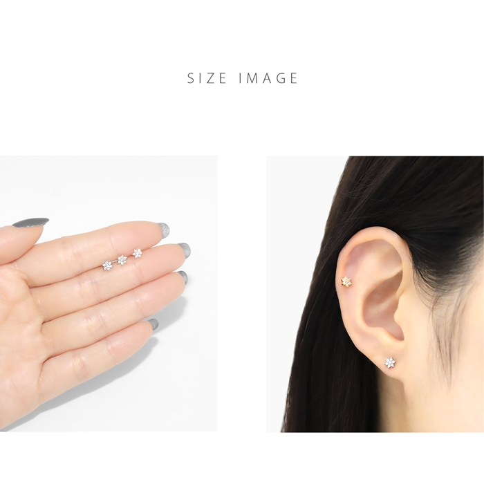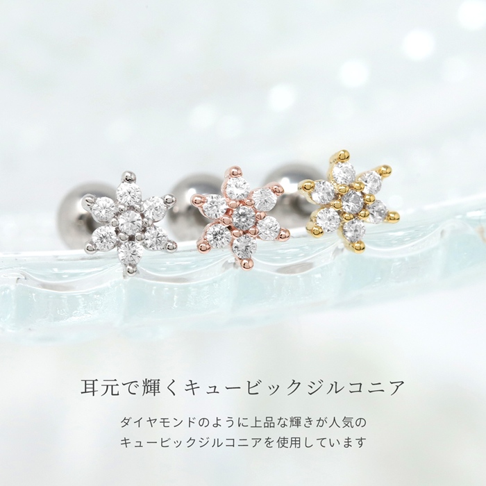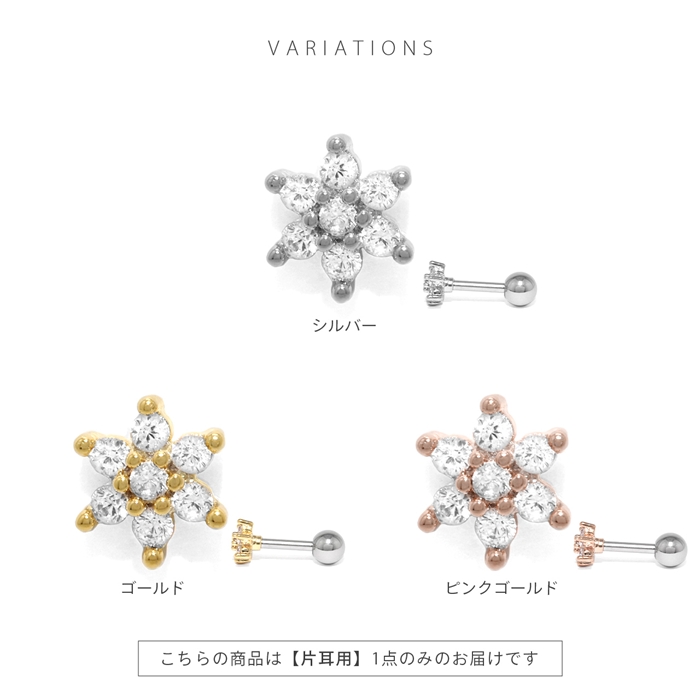 軟骨ピアス 16G ボディピアス 雪の結晶 小さい ジュエル ジルコニア サージカルステンレス トラガス 片耳用