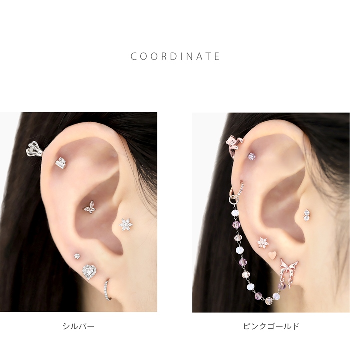 ボディピアス 軟骨ピアス 14G 16G 18G ジュエル 金属アレルギー対応 ステンレス 片耳用 トラガス レディース