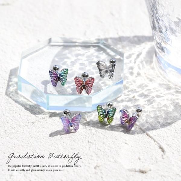 ボディピアス 軟骨ピアス 16ゲージ 蝶 バタフライ グラデーション ストレートバーベル 紫 白 黒 赤 緑 ヘリックス インナーコンク レディース 軟骨1342 f1f-059