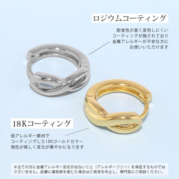 【両耳用・2個売り】ピアス ワンタッチ リング フープ インフィニティ レディース 18金コーティング ループ キャッチ無し メビウス アクセサリーカテ0018 fp-010