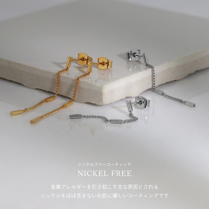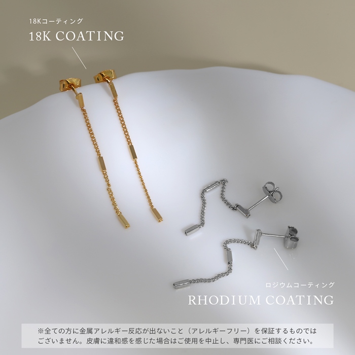 【両耳用・2個売り】 ピアス チェーン 揺れる 18金コーティング ロジウムコーティング スタッドピアス アクセサリーカテ0051 fp-035