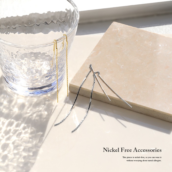 【両耳用・2個売り】 ピアス アメリカンピアス 揺れる 細い ロング チェーン 18金 アクセサリーカテ0063 fp-047