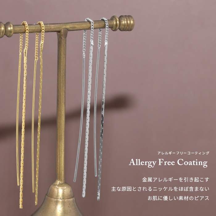 ピアス チェーン レディース 揺れる ロング 18Kコーティング 18金 20代 30代 40代 『両耳用・2個セット』