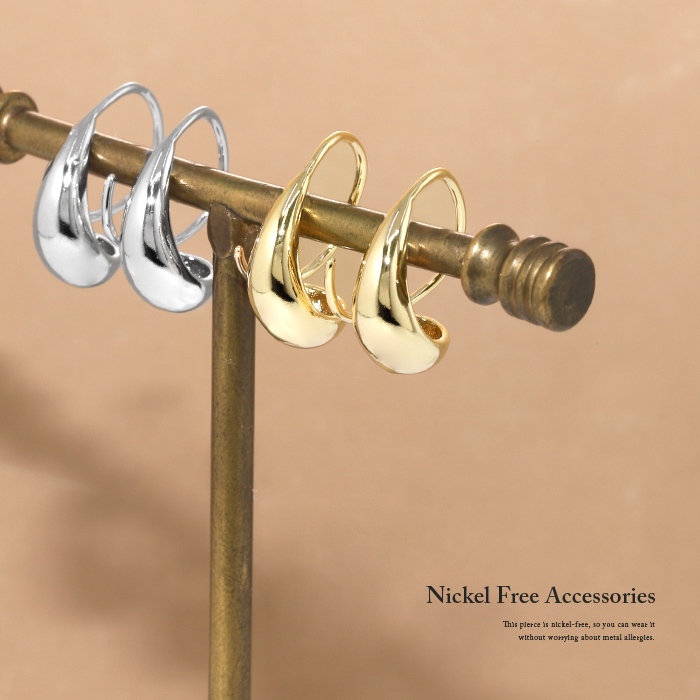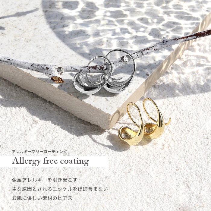 ピアス レディース 18Kコーティング 18金 ドロップ シンプル フック キャッチレス 40代 50代 『両耳用・2個セット』
