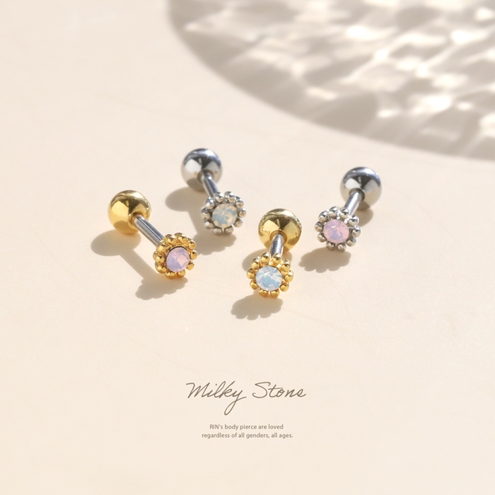 ボディピアス 軟骨ピアス 16G トラガス プチジュエル ミルキーカラー かわいい ストレートバーベル 軟骨0881 h752-29
