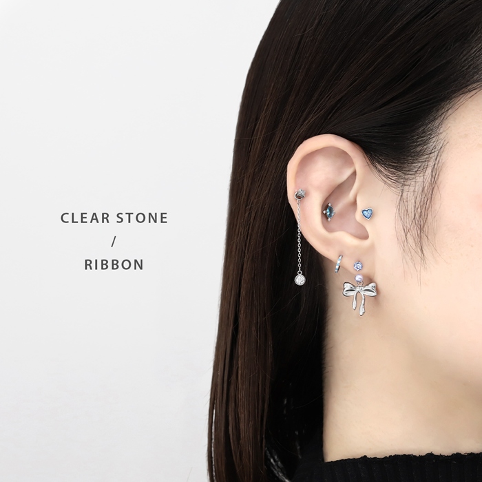 14G 16G 18G つけっぱなし カスタマイズ ハート リボン クリア アレンジ チャーム ピアス パーツ チェーン 片耳用 チャーム0249 k64-005