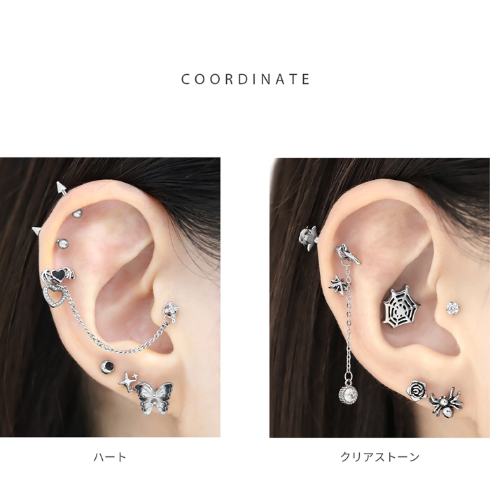 ボディピアス 軟骨ピアス 14G 16G 18G ジュエル 金属アレルギー対応 ステンレス 片耳用 トラガス レディース