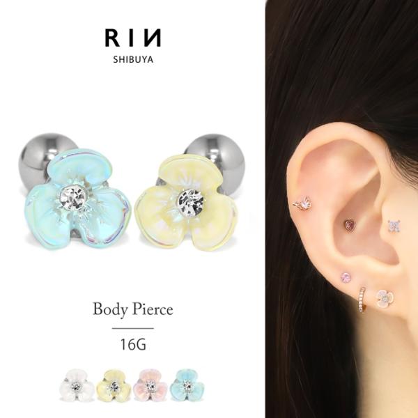 軟骨ピアス 16G ボディピアス 花 フラワー 金属アレルギー対応 かわいい サージカルステンレス 片耳用