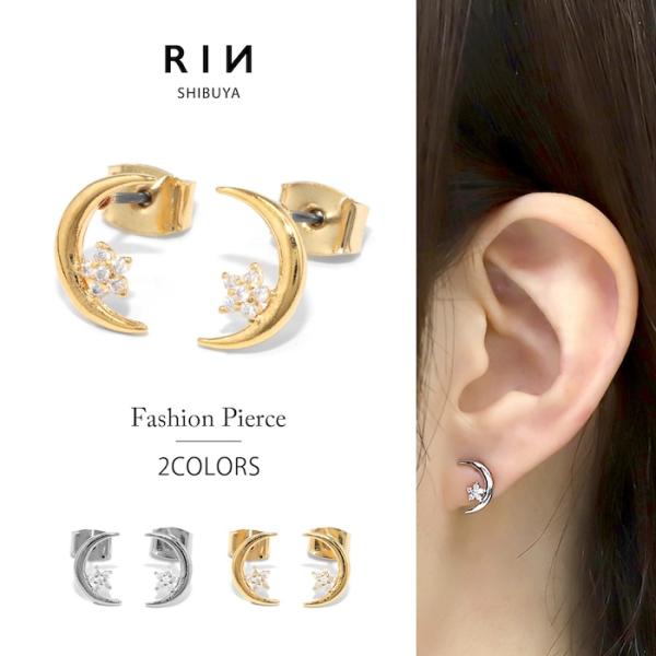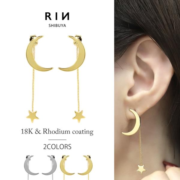 ピアス 大ぶり 月 星 レディース 揺れる 18Kコーティング チタンポスト スタッドピアス 『両耳用・2個セット』