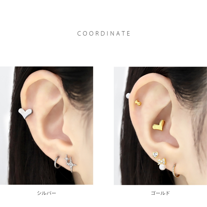 キャッチ 軟骨ピアス ハート カスタム 14G 16G 18G 12G ボディピアス 片耳用 パーツ 可愛い レディース