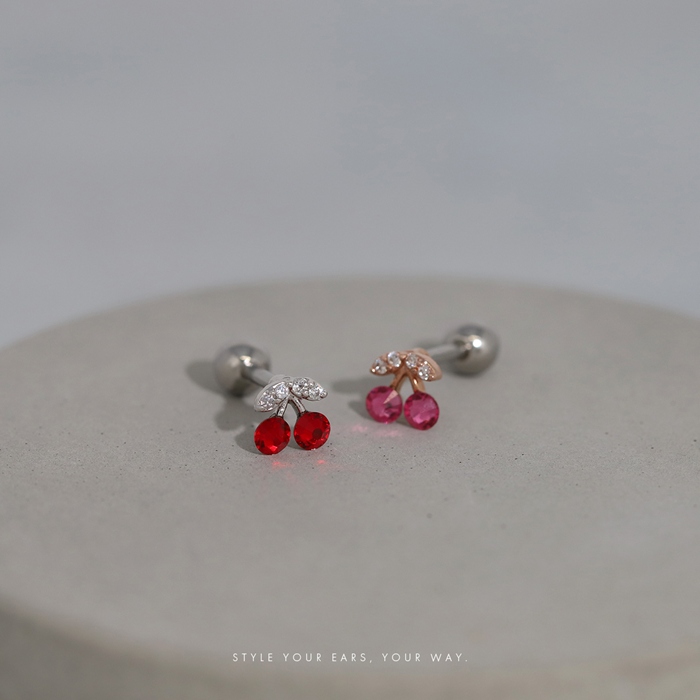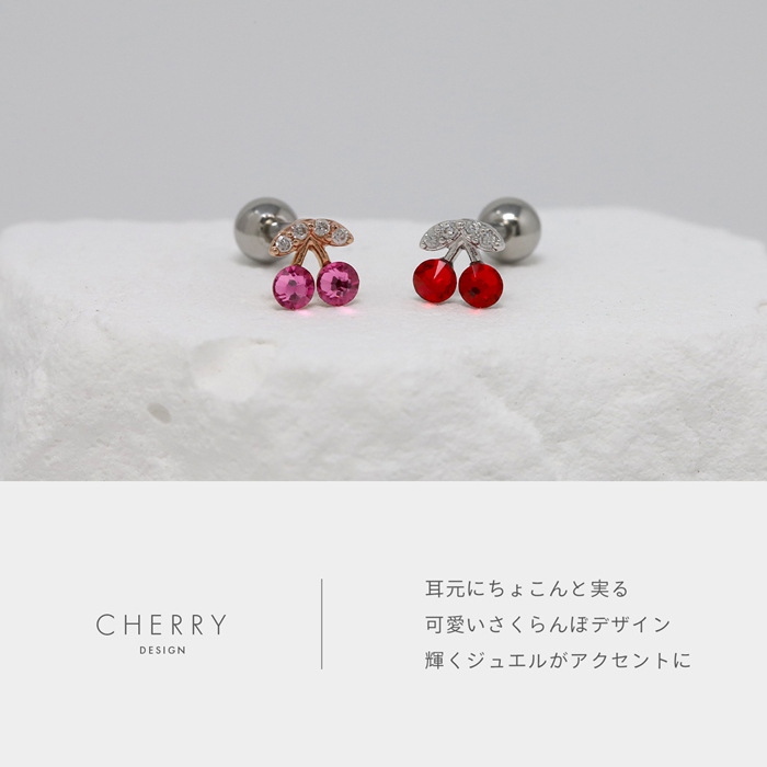 軟骨ピアス 16G ボディピアス さくらんぼ チェリー ジュエル フルーツ 果物 ストレートバーベル サージカルステンレス 片耳用