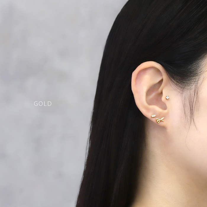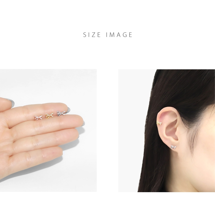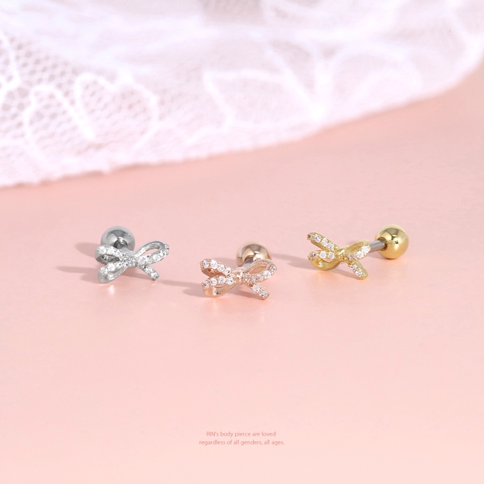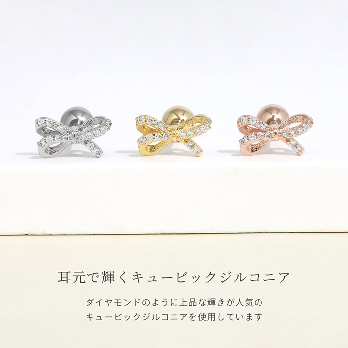 軟骨ピアス 16G ボディピアス リボン りぼん バレエコア ジュエル ジルコニア ストレートバーベル サージカルステンレス 片耳用
