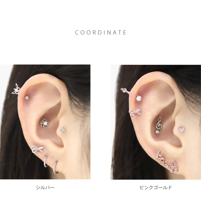 ボディピアス 軟骨 リボン バレエコア かわいい ジュエル