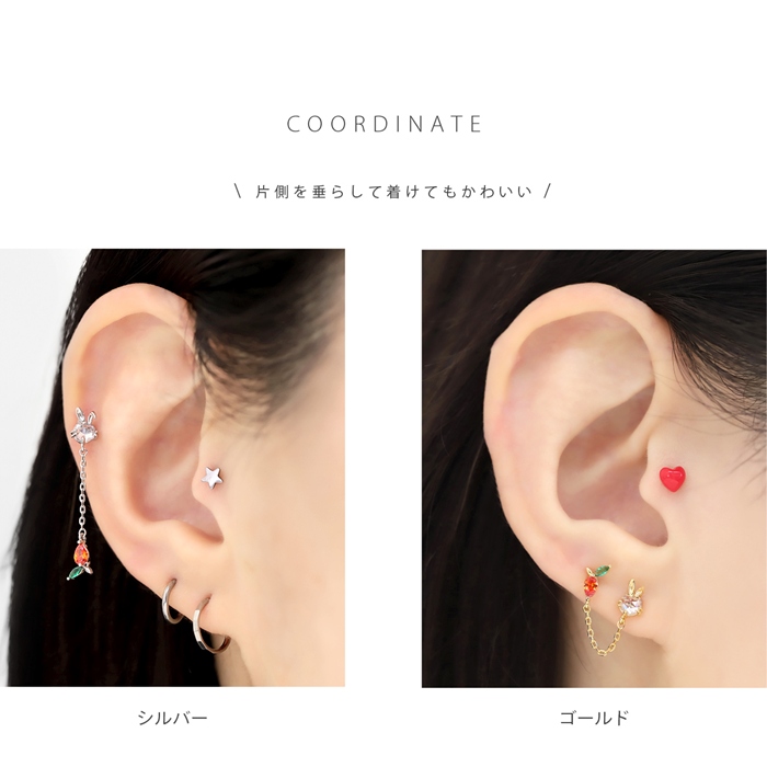 軟骨ピアス 16G ボディピアス うさぎ にんじん アニマル 動物 チェーン ジュエル サージカルステンレス 片耳用
