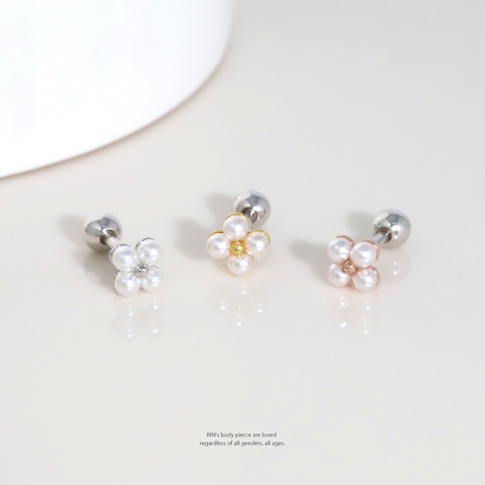 軟骨ピアス 16G ボディピアス パール 花 フラワー ストレートバーベル サージカルステンレス 片耳用