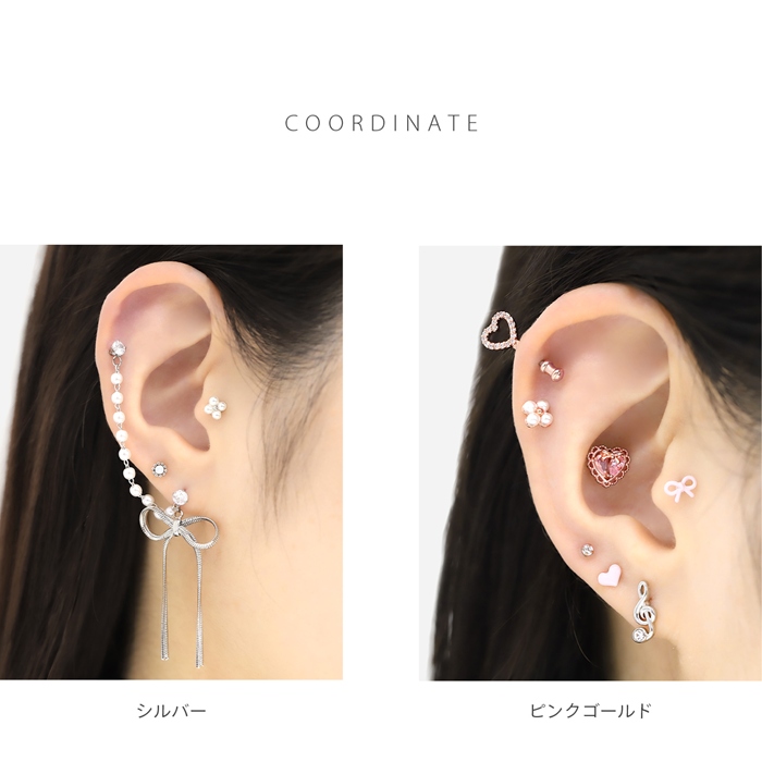 ボディピアス 軟骨ピアス 14G 16G 18G ジュエル 金属アレルギー対応 ステンレス 片耳用 トラガス レディース