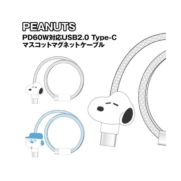 送料無料 ピーナッツ PD60W対応 USB2.0 Type-C マスコットマグネットケーブル SNGG-203 / スヌーピー オラフ