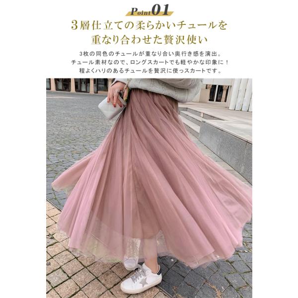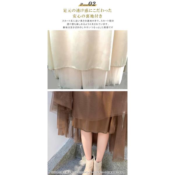 春新作 着丈選べる チュールスカート スカート ロング ボリューム チュール 裏地付き ウエストゴム 春 大人 フレアスカート マキシ 大人