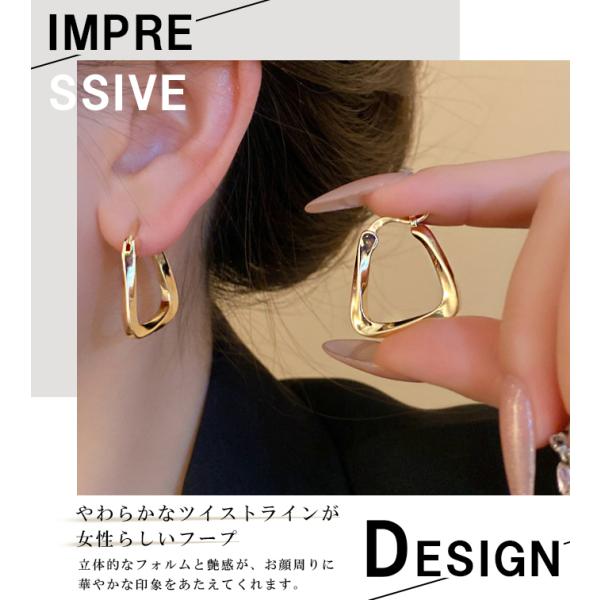 ピアス フープピアス イヤリング 大ぶり ツイスト レディース 大人 かわいい 上品 エレガント ゴールド シルバー プチプライス高見え
