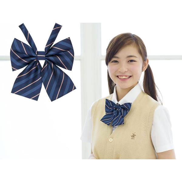 ヘリンボーン生地のストライプ柄でかわいさ偏差値が急上昇☆映画ビリギャルでも使われた定番可愛いリボンです。素材:ポリエステル100%リボン:ワンタッチで着脱可能なフック付き、首回りの長さは調節可能。