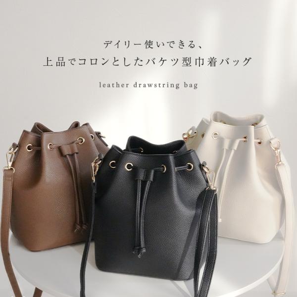 バケツ型巾着バッグ 2way レザー 斜め掛け 黒 大容量 軽量 巾着バッグ ショルダー レディース ショルダーバッグ 大きめ バケツ型 フェイクレザー