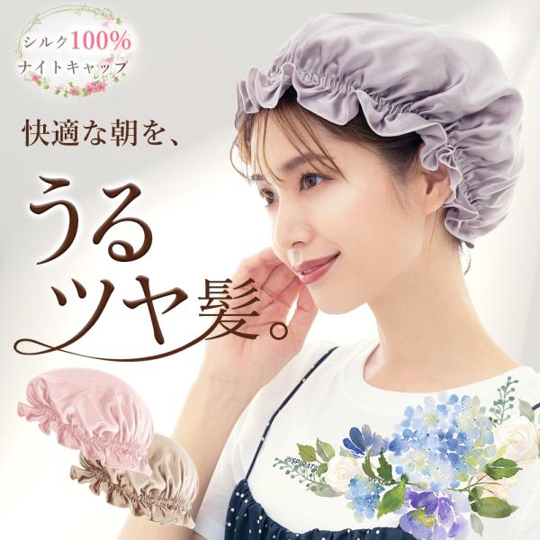 ナイトキャップ シルク シルク100% ロングヘア かわいい 寝癖 就寝用 前結び ヘアキャップ パサつき予防 サイズ調整 安眠グッズ シルクキャップ ヘアケア