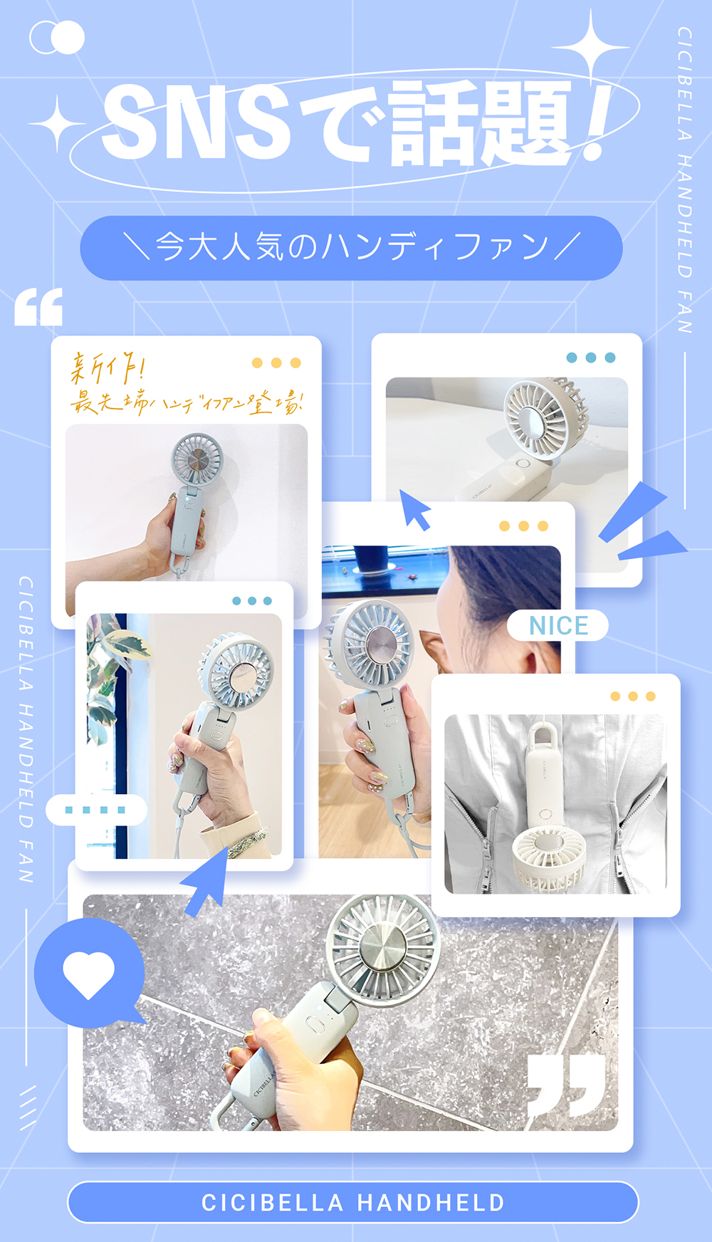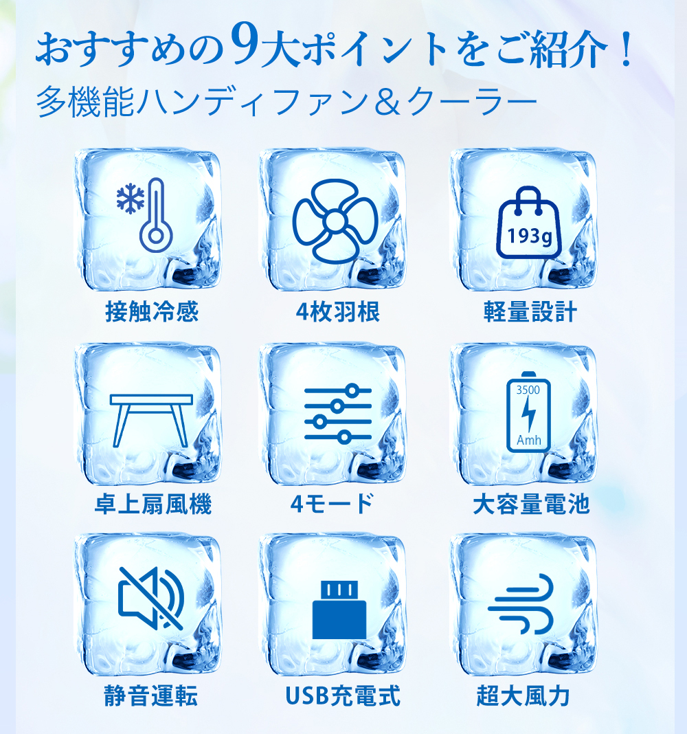 超軽量&静音設計 で、どこでも快適に涼める万能冷却ハンディファン!