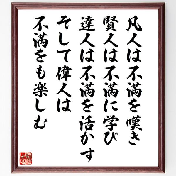 名言「凡人は不満を嘆き、賢人は不満に学び、達人は不満を活かす、そして偉人は不満をも楽しむ」手書き書道色紙額/受注後の毛筆直筆