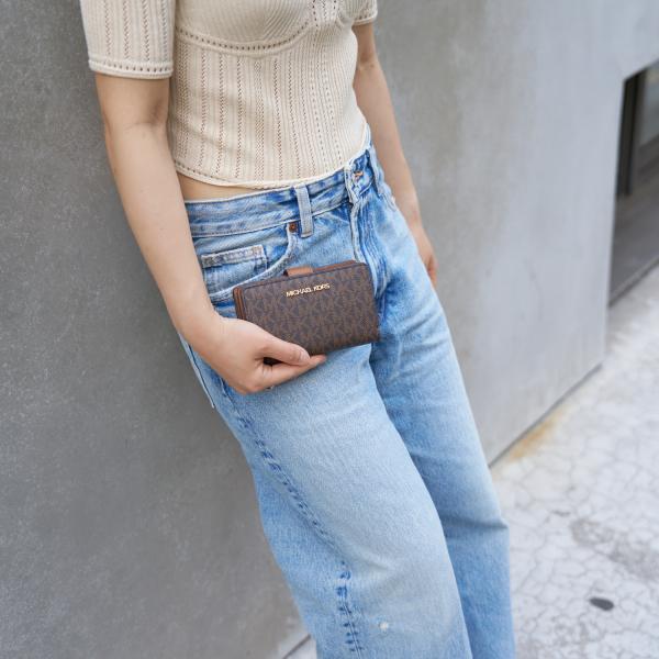 MKのモノグラム柄がオシャレで大人っぽい雰囲気を演出。小銭入れが大きく開くのでストレスフリーでお使いいただけます。