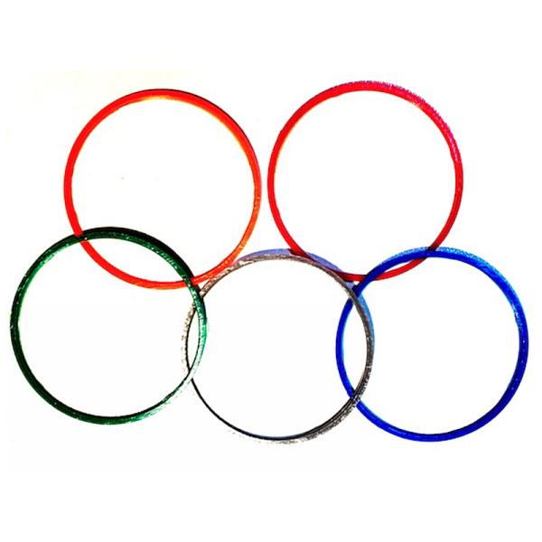 プラスチック製リング5個1セットでゴム黒リングを合わせて6台の色の変化を演出します。