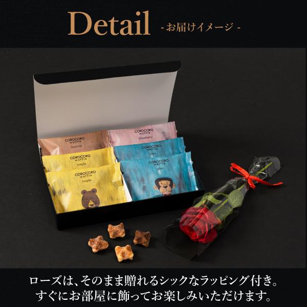 美しさが変わらない枯れないお花(ローズ)をセットにして、より気持ちの伝わるギフトに。