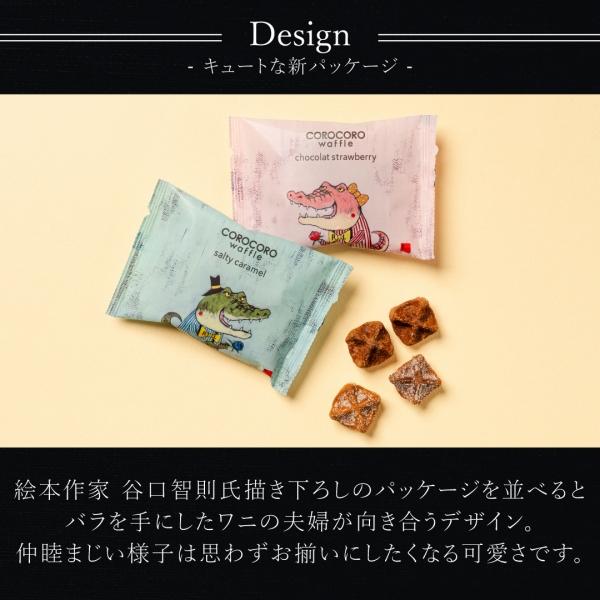 絵本作家 谷口智則氏の世界観が楽しめる描き下ろしのイラストが彩るブルーのパッケージは、ちょこんとかぶった帽子がお似合いのワニが目を引きます。食べきりサイズでプチギフトにおすすめです。
