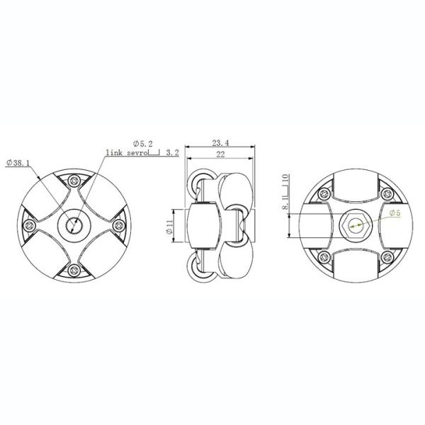 本商品は、本体(ホイール)の回転(前後の動き)と横方向への移動(左右の動き)のコンビネーションによって多方向への動きを可能とする車輪です。