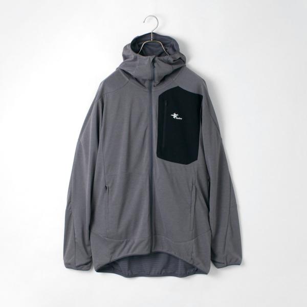 また、吸汗速乾、UVカット機能も持たせているので、日差しの強いアウトドアシーンで効果を発揮。フードを被れば、バラクラバのようになり、顔周りも日差しや虫からしっかりと守ることができます。
