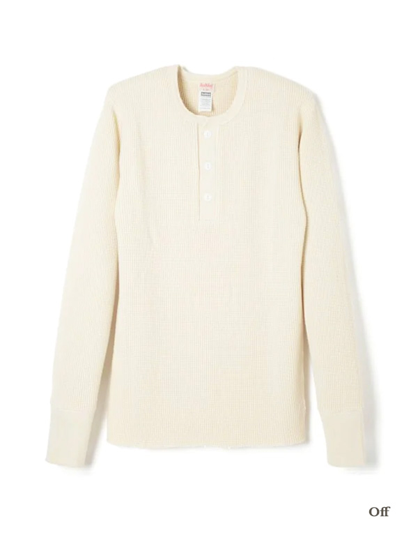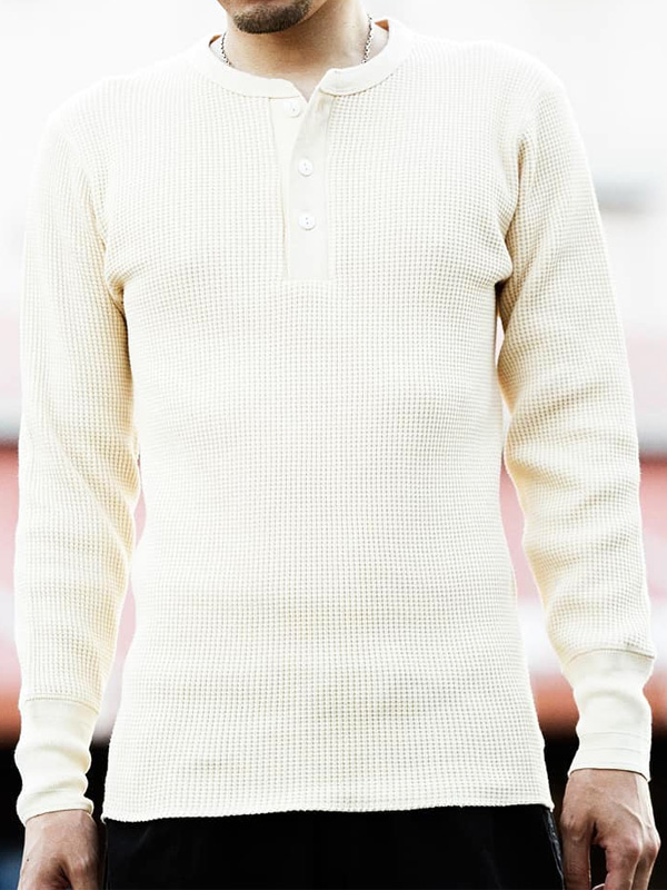 ヘルスニット スーパーヘビーワッフル ヘンリーネック長袖Tシャツ