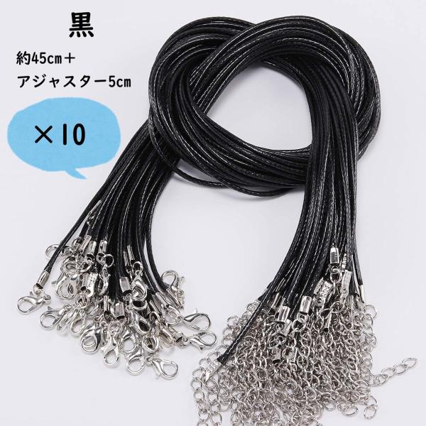 個包装なし ブラック 黒 PU レザー 1.5mm ネックレス ペンダント チェーン のみ 革 10 本 10 合 皮 アジャスター コード 45 cm 手作り アクセサリー