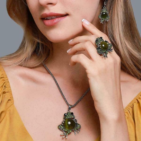 カエル 緑 ピアス ピン ブローチ パワーストーン 縁起 両生類 エキゾチック アニマル 動物 蛙 大きめ レプタイルズ セット レディース メンズ