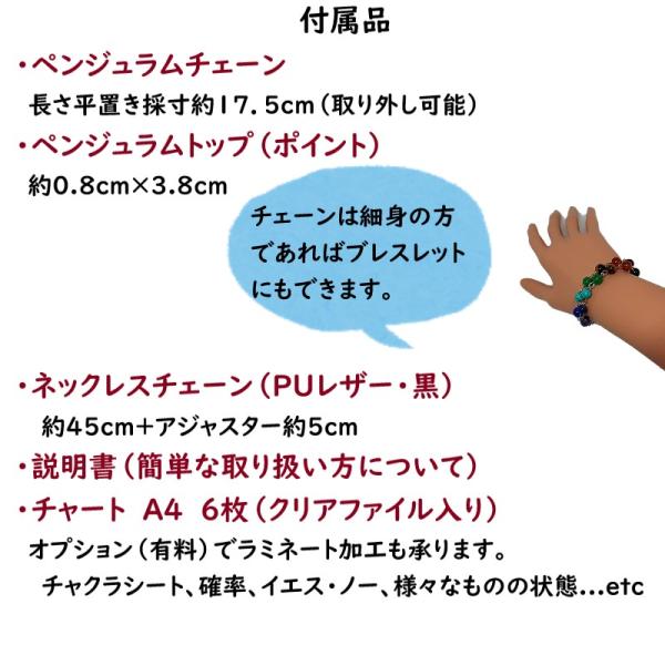 ・ネックレスストラップ(金具の取り外しの必要なく、ペンジュラムのポイント(先端部分)を取り付けることが出来ます。